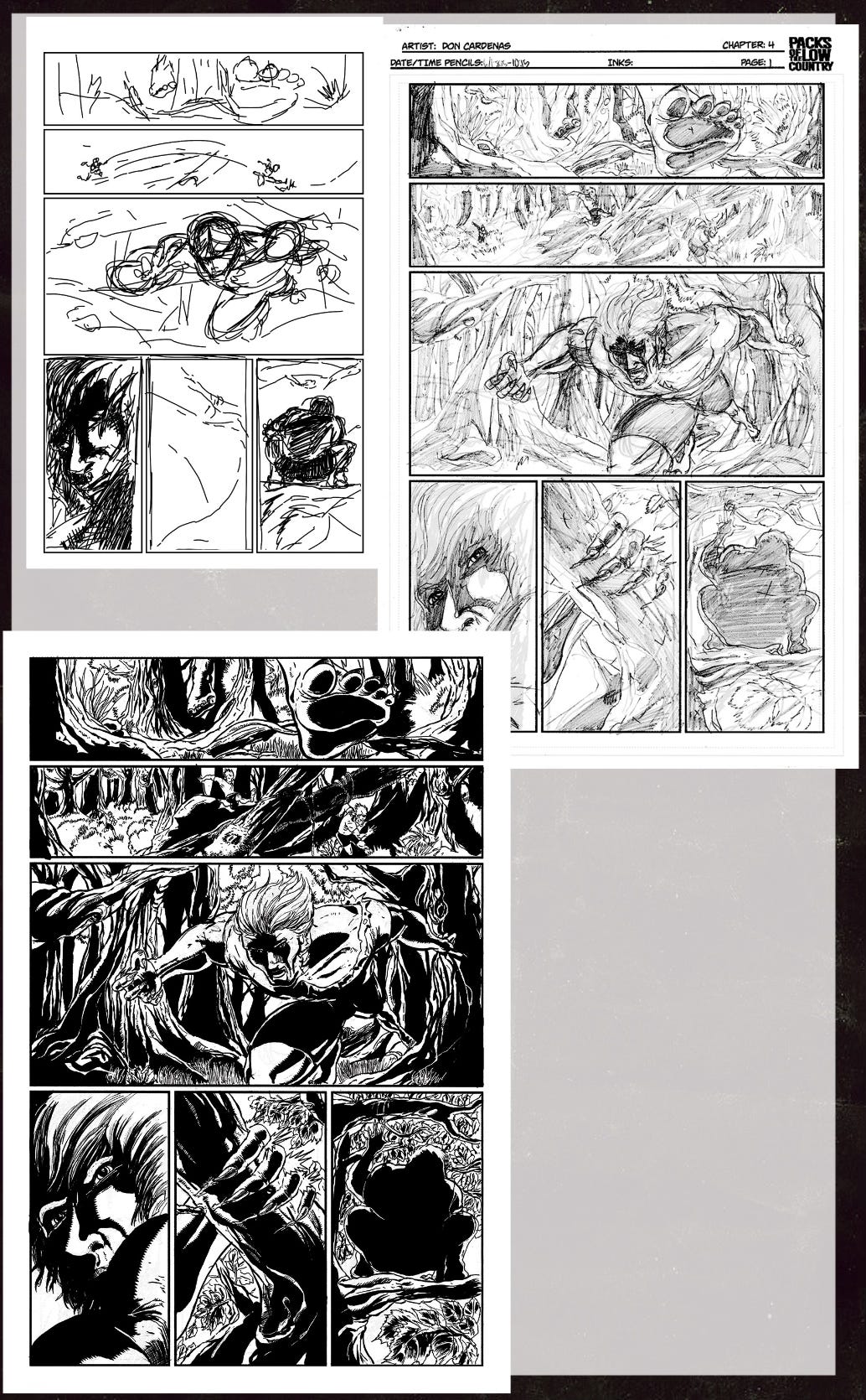 These two images were included as backmatter in Big Shoulders #1 (2025) and Packs of the Lowcountry collected edition (2017).