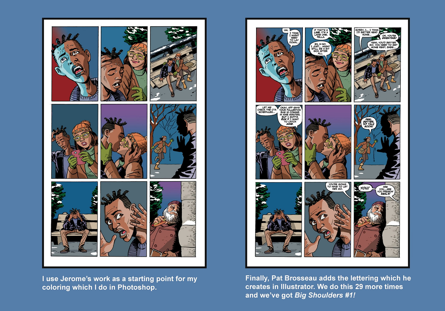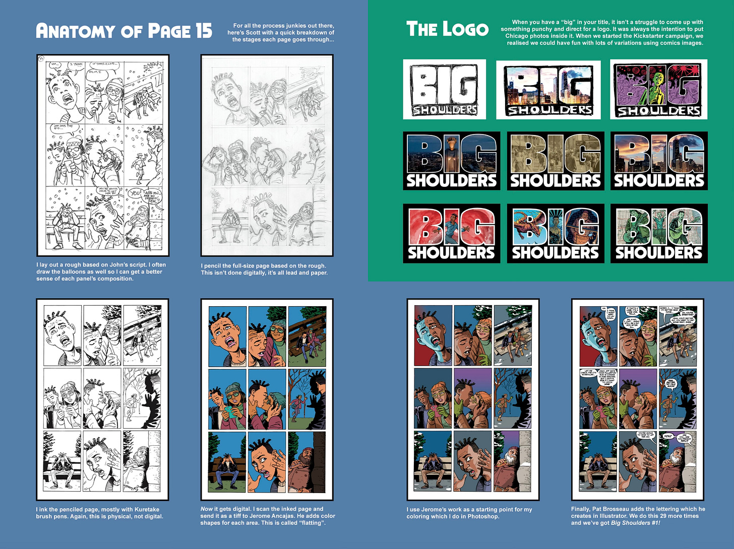 Big Shoulders’ artist Scott Gray lays this process out far better than I ever could. Check out his full anatomy of a page, step by step: