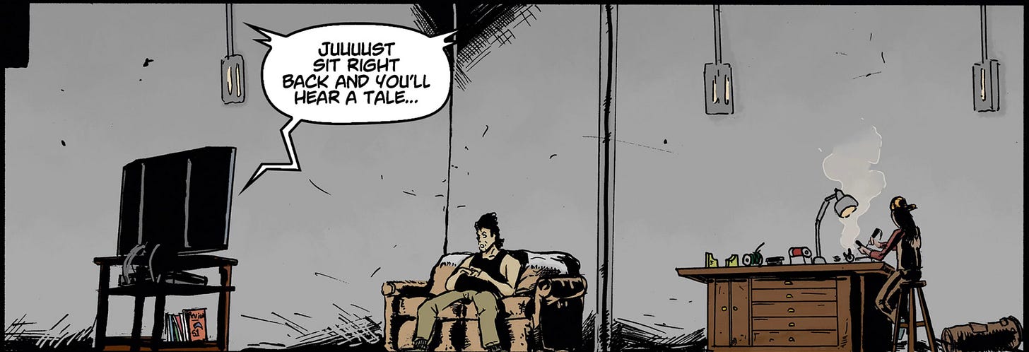 If we’re spending pages and pages sitting down talking at a table, a comic isn’t taking advantage of the medium. That is, unless the artist is a master cartoonist who can really find something distinct to ensure the proceedings remain visually interesting. It’s doable. But it’s creating additional hurdles for your story.